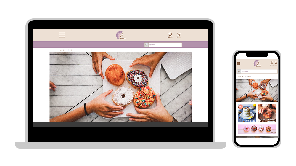 職業訓練の授業で、テキストに沿って基本的なPHPを学習し、演習として、支給されたfigmaのデザインカンプと仕様書をもとに、架空のドーナツ店のサイトを制作しました。