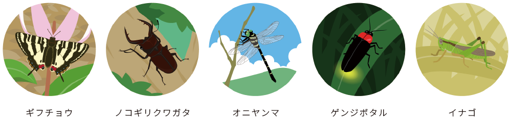 【体験コンテンツ】妙高山いきものウォッチング works:前社 担当箇所: 植物、虫イラスト 使用ツール:Illustrator ■植物、虫イラスト 支給された生き物や植物の写真をトレス、背景をアレンジして作成しました。 40 種程担当。(制作時間:1 種 約4 時間)