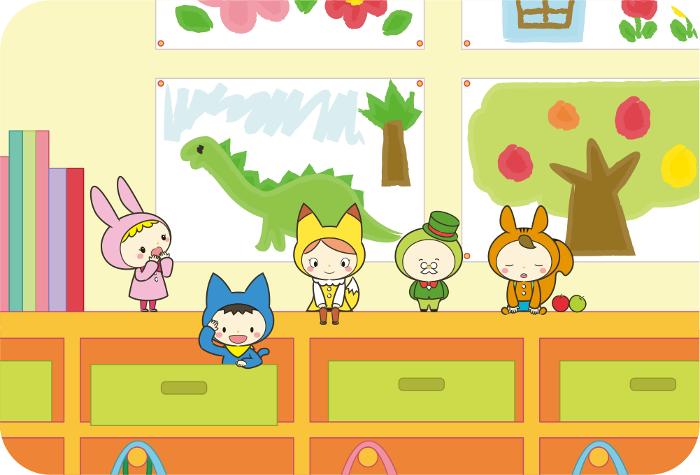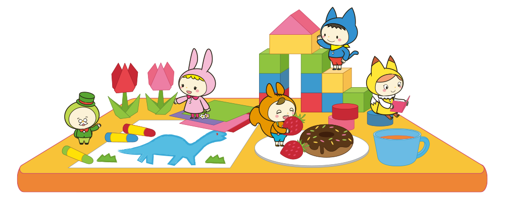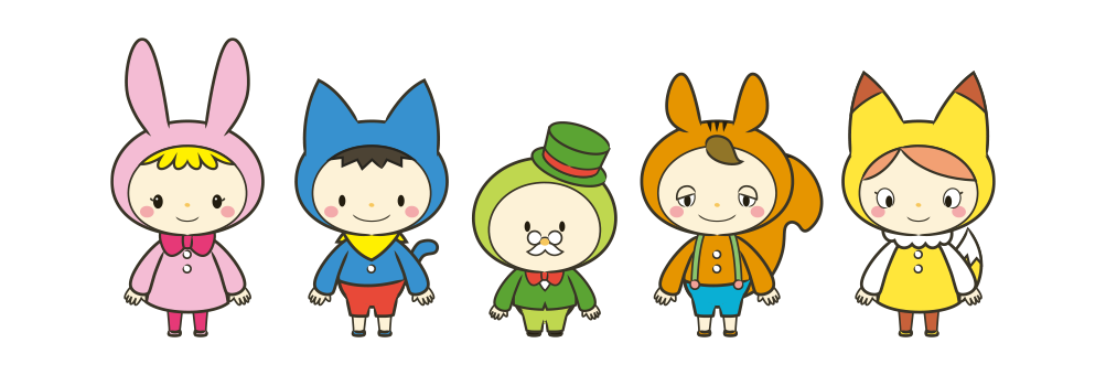 幼児向け学習ドリル 新キャラクター案コンペ「かぶりものをした小人たちのキャラクター」